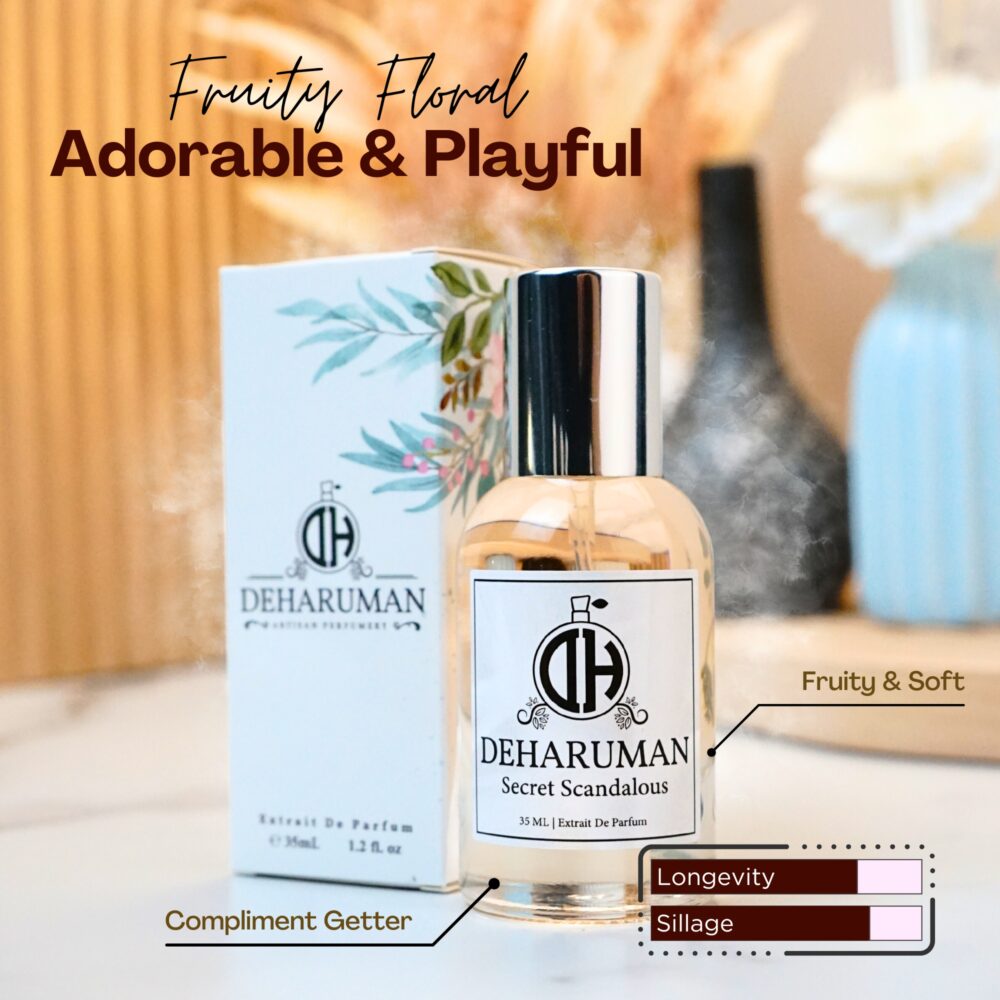 Indulge in the irresistible allure of Secret Scandalous and unleash your inner provocateur. With each spritz, you'll exude an air of confidence, success, and sophistication that commands attention and leaves a lasting impression. Elevate your senses and make every moment unforgettable with Secret Scandalous from Deharuman.